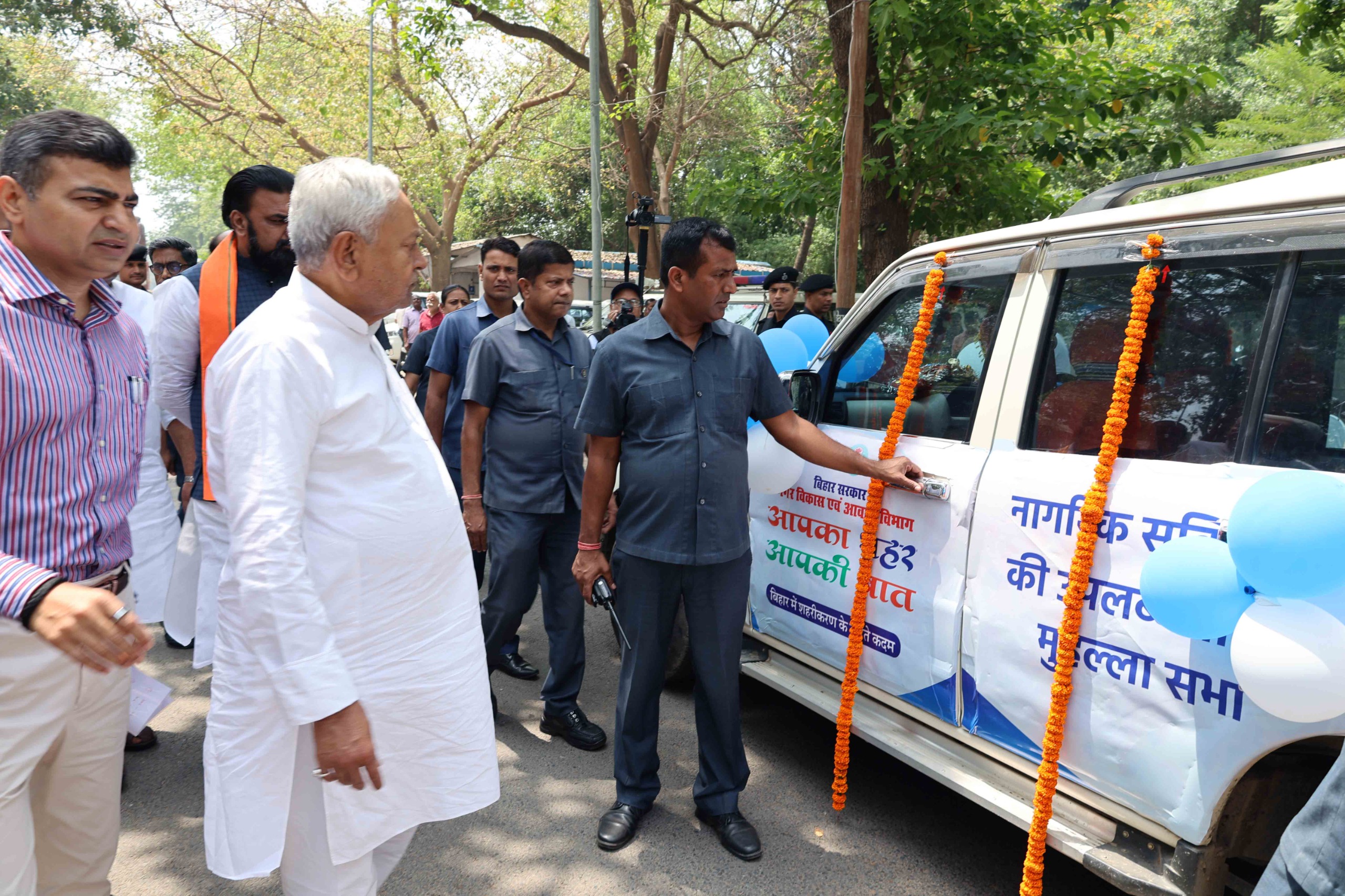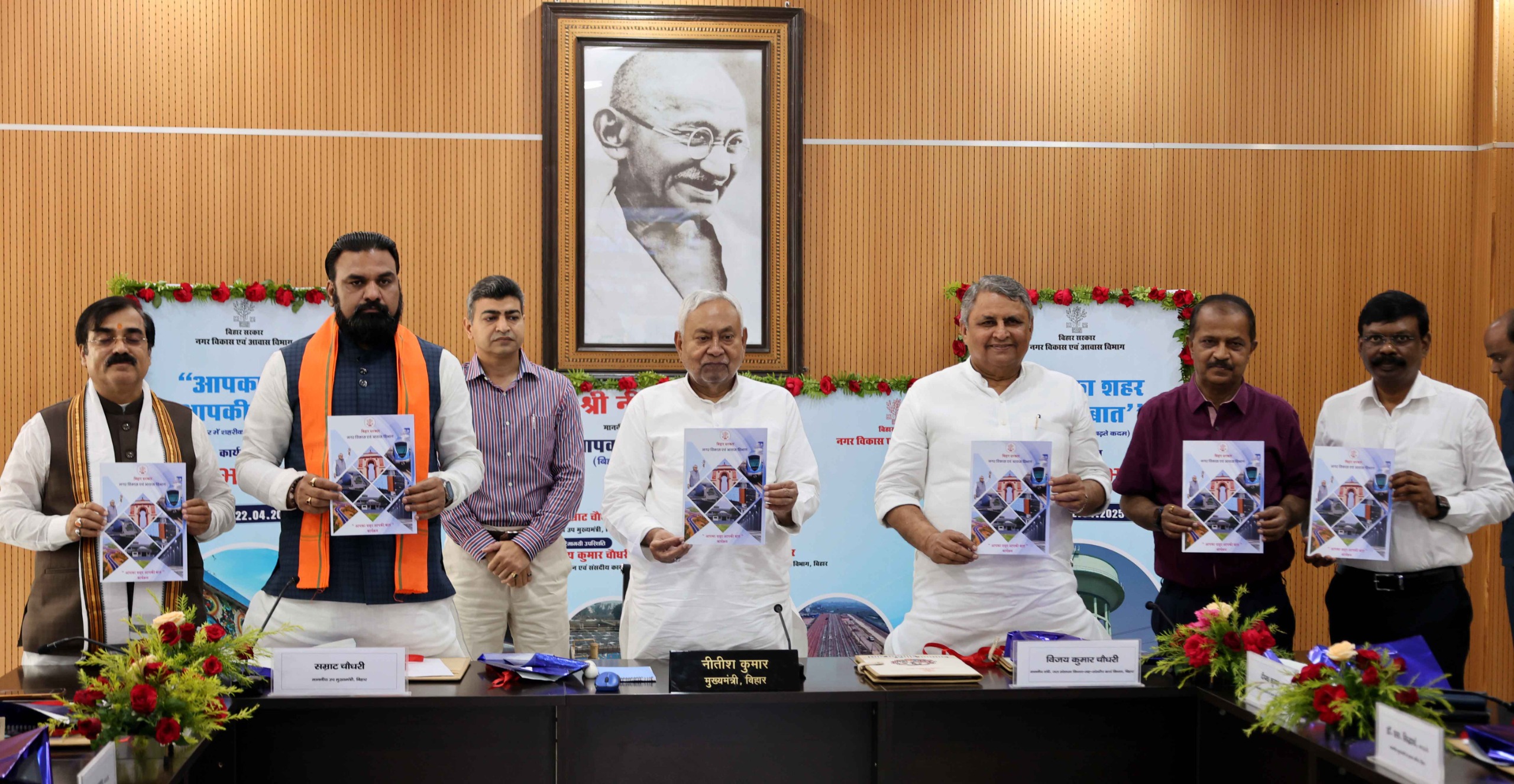 इस अवसर पर उप मुख्यमंत्री सम्राट चौधरी, जल संसाधन सह संसदीय कार्य मंत्री विजय कुमार चौधरी, नगर विकास एवं आवास मंत्री जिवेश कुमार, मुख्यमंत्री के प्रधान सचिव दीपक कुमार, विकास आयुक्त प्रत्यय अमृत, मुख्यमंत्री के प्रधान सचिव डॉ० एस० सिद्धार्थ, नगर विकास एवं आवास विभाग के सचिव अभय कुमार सिंह, मुख्यमंत्री के सचिव कुमार रवि, मुख्यमंत्री के विशेष कार्य पदाधिकारी गोपाल सिंह, नगर विकास एवं आवास विभाग के विशेष सचिव अनिमेश कुमार पराशर, नगर विकास एवं आवास विभाग की अपर सचिव वर्षा सिंह, नगर विकास एवं आवास विभाग के अपर सचिव विजय प्रकाश मीणा, नगर विकास एवं आवास विभाग के अपर सचिव राजीव कुमार श्रीवास्तव सहित अन्य वरीय अधिकारी उपस्थित थे, जबकि वीडियो कांफ्रेंसिंग के माध्यम से सभी जिलों के जिलाधिकारी, नगर निकायों के प्रतिनिधिगण तथा नगर विकास एवं आवास विभाग के अधिकारी जुड़े हुये थे।