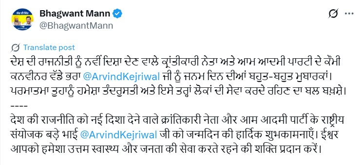 सीएम मान ने दी ‘क्रांतिकारी नेता’ को शुभकामनाएं