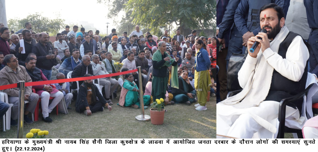 चंडीगढ़, 22 दिसंबर – हरियाणा के मुख्यमंत्री श्री नायब सिंह सैनी(CM Saini) ने कहा कि प्रदेश सरकार द्वारा कल्याणकारी योजनाओं का लाभ पात्र व्यक्तियों को सीधे उनके घर द्वार पर पहुँचाना सुनिश्चित किया जा रहा है। उन्होंने कहा कि सरकार समाज के अंतिम व्यक्ति से संपर्क कर उसकी समस्याओं का समाधान करने के लिए प्रतिबद्ध है तथा यह सुनिश्चित कर रही है कि कोई भी पात्र पीछे न छूटे।