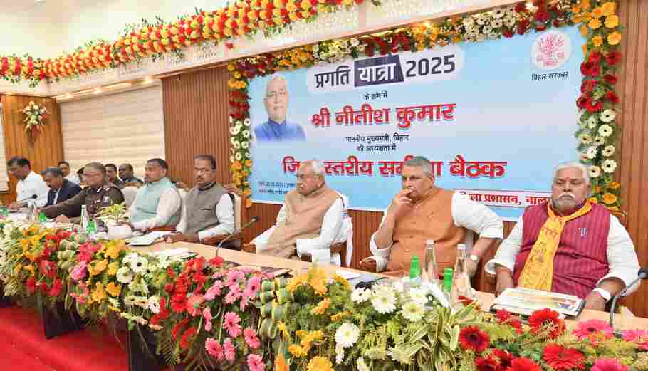 Bihar News: मुख्यमंत्री नीतीश कुमार (CM Nitish Kumar) ने आज प्रगति यात्रा (Pragati Yatra) के क्रम में नालंदा (Nalanda) जिले में चल रही विकासात्मक योजनाओं के संबंध में शहीद हरदेव भवन, बिहारशरीफ में समीक्षात्मक बैठक की। समीक्षात्मक बैठक में नालंदा जिले के जिलाधिकारी शशांक शुभंकर ने नालंदा जिले के विकास कार्यों का प्रस्तुतीकरण के माध्यम से विस्तृत जानकारी दी। जिलाधिकारी ने बिहार स्टूडेंट क्रेडिट कार्ड योजना, मुख्यमंत्री निश्चय स्वयं सहायता भत्ता योजना, कुशल युवा कार्यक्रम, हर घर नल का जल एवं उनका अनुरक्षण, हर घर तक पक्की गली-नाली, मुख्यमंत्री ग्रामीण सोलर स्ट्रीट लाइट योजना (Chief Minister Rural Solar Street Light Scheme), हर खेत तक सिंचाई का पानी, कृषि फीडर का निर्माण, मुख्यमंत्री कृषि विद्युत कनेक्शन योजना, मुख्यमंत्री उद्यमी योजना, उच्चतर शिक्षा हेतु महिलाओं को प्रोत्साहन, स्वास्थ्य उपकेंद्र में टेलीमेडिसिन के माध्यम से चिकित्सा परामर्श, पशु चिकित्सा सेवाओं की डोर स्टेप डिलीवरी एवं पंचायत सरकार भवन के निर्माण की अद्यतन स्थिति के संबंध में मुख्यमंत्री को विस्तृत जानकारी दी।