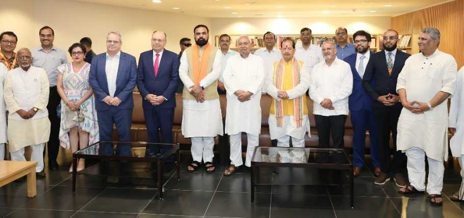 कार्यक्रम में कला, संस्कृति एवं युवा विभाग के मंत्री श्री मोतीलाल प्रसाद ने मुख्यमंत्री को पुष्प गुच्छ भेंटकर उनका स्वागत किया। इस दौरान बिहार संग्रहालय बिएनाले – 2025 में इथोपिया, इंडोनेशिया, श्रीलंका, मैक्सिको, अर्जेंटिना और पेरू से आये एम्बेसडर्स के साथ मुख्यमंत्री ने महत्वपूर्ण बिन्दुओं पर चर्चा की और सामूहिक तस्वीर खिंचवाई। बिहार संग्रहालय परिसर स्थित मुक्ताकाश प्रेक्षास्थल में होने वाले सांध्यकालीन सांस्कृतिक कार्यक्रम की तैयारियों का भी मुख्यमंत्री ने जायजा लिया। वहां उपस्थित लोगों ने हाथ हिलाकर मुख्यमंत्री का अभिवादन किया। मुख्यमंत्री ने बिहार संग्रहालय बिएनाले – 2025 में भाग ले रहे कलाकारों से मुलाकात कर उनका उत्साहवर्द्धन किया।