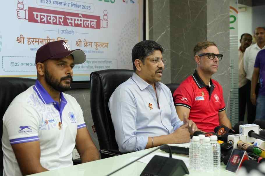 Bihar News: बिहार में पहली बार राजगीर खेल परिसर में 29 अगस्त से 7 सितंबर तक आयोजित होने वाली हीरो एशिया कप 2025 बिहार से संबंधित एक पत्रकार सम्मेलन पाटलिपुत्र खेल परिसर के कॉन्फ्रेंस हॉल में आज आयोजित किया गया। खेल विभाग के अपर मुख्य सचिव डॉ. बी राजेंदर,बिहार राज्य खेल प्राधिकरण के महानिदेशक सह मुख्य कार्यकारी अधिकारी श्री रवीन्द्रण शंकरण, हीरो एशिया कप के लिए पटना पहुंची भारतीय हॉकी टीम के कप्तान हरमनप्रीत सिंह और प्रशिक्षक क्रेग फुल्टन शामिल रहे प्रेस वार्ता में।