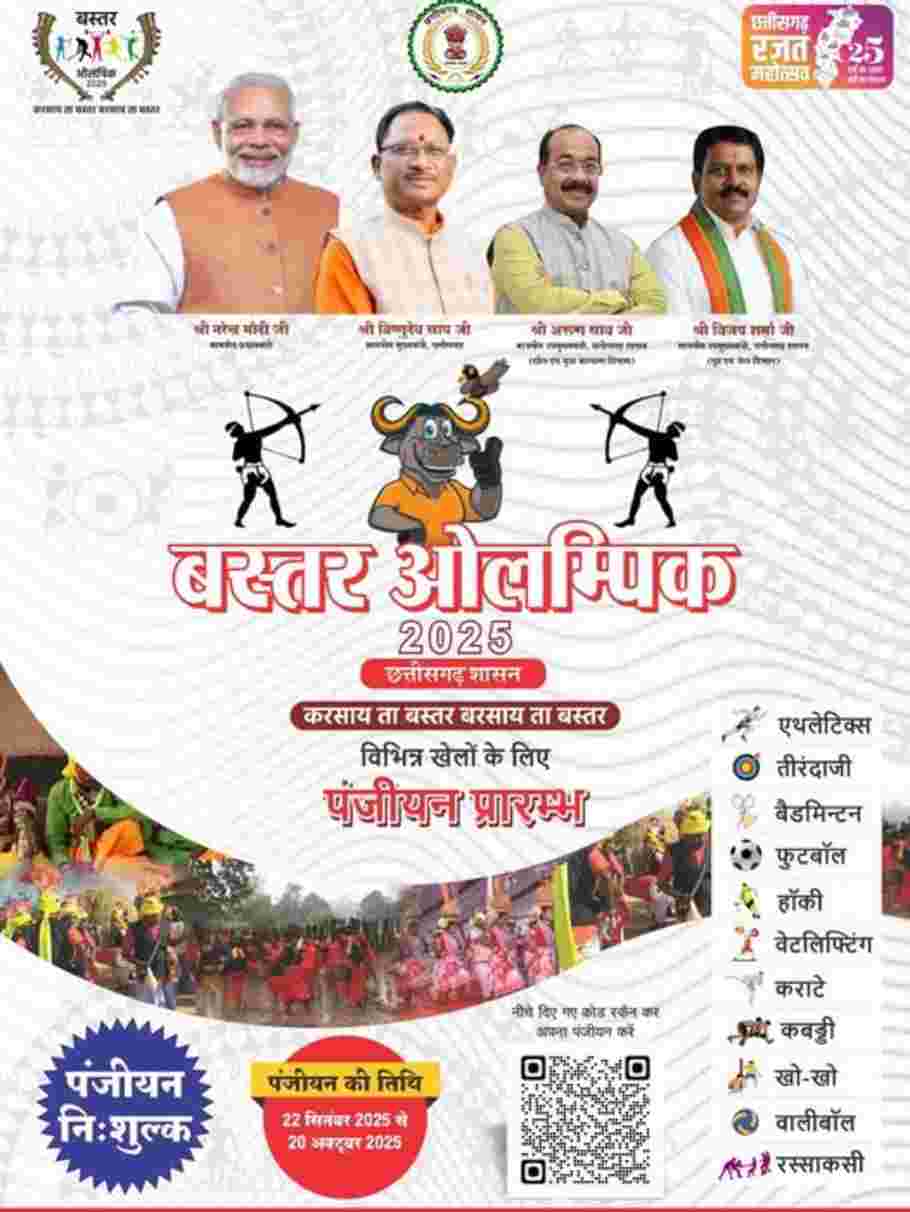 Chhattisgarh News: छत्तीसगढ़ के अनुसूचित जनजातीय बाहुल्य बस्तर संभाग में युवाओं की ऊर्जा, उत्साह और प्रतिभा को निखारने के उद्देश्य से ‘बस्तर ओलंपिक 2025’ का आयोजन किया जा रहा है। मुख्यमंत्री विष्णु देव साय के मार्गदर्शन में गृह (पुलिस) विभाग और खेल एवं युवा कल्याण विभाग के संयुक्त तत्वावधान में होने वाला यह आयोजन प्रदेश के रजत जयंती वर्ष में बस्तर की नई पहचान बनेगा। बस्तर ओलंपिक 2025 के प्रति लोगों में उत्साह का अंदाज़ा इसी से लगाया जा सकता है कि अब तक बस्तर संभाग के 7 जिलों से 3 लाख 91 हजार 289 खिलाड़ियों ने पंजीयन कराया है। इनमें 1 लाख 63 हजार 668 पुरुष और 2 लाख 27 हजार 621 महिला खिलाड़ी शामिल हैं। यह संख्या न केवल बस्तर के युवाओं का खेलों के प्रति बढ़ते उत्साह को दर्शाती है, बल्कि यह भी साबित करती है कि बस्तर की धरती पर अब खेल एक नई सामाजिक चेतना और समान भागीदारी का प्रतीक बन चुके हैं।