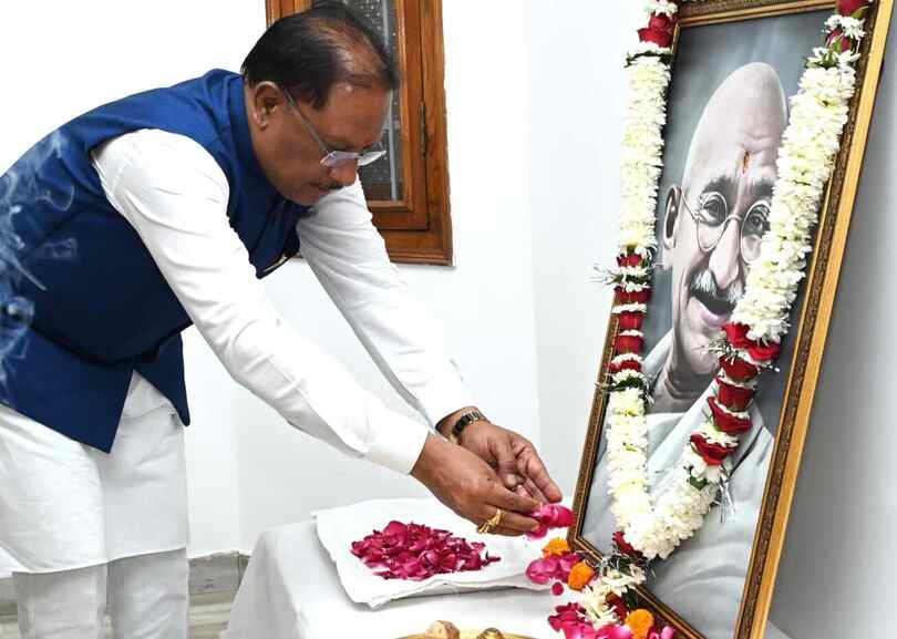Chhattisgarh News: मुख्यमंत्री विष्णु देव साय ने आज मुख्यमंत्री निवास कार्यालय में महात्मा गांधी जी की पुण्यतिथि पर उनके छायाचित्र पर पुष्प अर्पित कर उन्हें नमन किया।