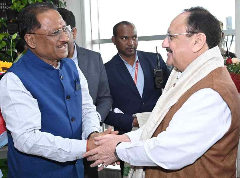 मुख्यमंत्री विष्णु देव साय ने मंत्री जगत प्रकाश नड्डा का स्वामी विवेकानंद विमानतल पहुंचने पर पुष्प गुच्छ भेंटकर स्वागत किया। इस अवसर पर उप मुख्यमंत्री द्वय अरुण साव, विजय शर्मा सहित स्वास्थ्य मंत्री श्याम बिहारी जायसवाल, विधायक राजेश मूणत, सुनील सोनी एवं किरण देव सिंह ने भी केन्द्रीय स्वास्थ्य मंत्री का स्वागत किया।
