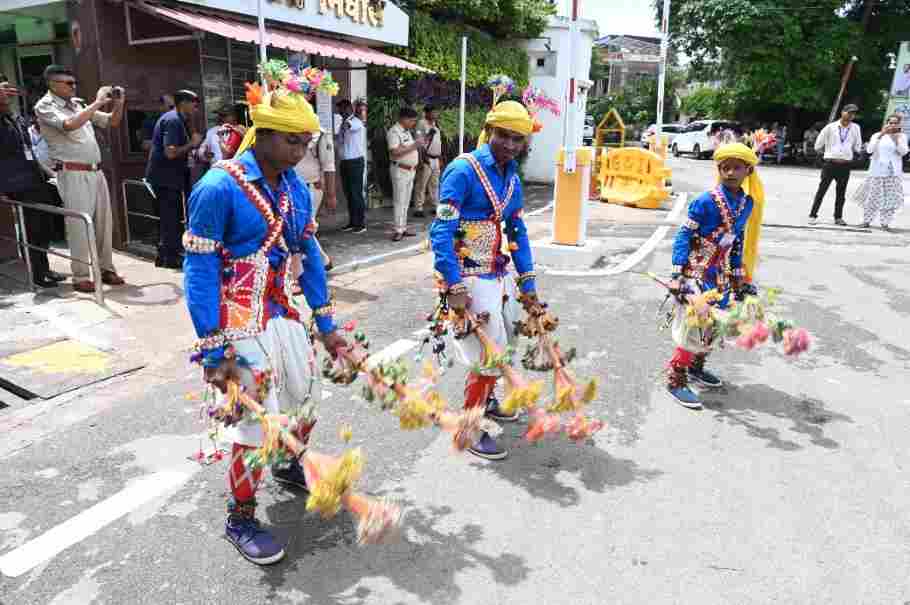 Chhattisgarh News: मुख्यमंत्री निवास में हरेली तिहार के अवसर पर पारंपरिक लोक यंत्रों की गूंज और छत्तीसगढ़ की सांस्कृतिक छटा के साथ सुंदर नाचा का आयोजन किया जा रहा है। पूरा परिसर उत्सवमय वातावरण से सराबोर है। ग्रामीण परिवेश की जीवंत छवि इस सुंदर माहौल में साकार हो गई है। कहीं सुंदर वस्त्रों में सजे राउत नाचा कर रहे कलाकारों की रंगत बिखरी है, तो कहीं आदिवासी कलाकार पारंपरिक लोक नृत्य की मोहक प्रस्तुतियाँ दे रहे हैं। छत्तीसगढ़ का अद्भुत ग्रामीण लैंडस्केप अपनी संपूर्ण सांस्कृतिक सुंदरता के साथ यहां सजीव रूप में अवतरित हो गया है। विभिन्न प्रकार की लोक धुनों में छत्तीसगढ़ी संगीत का माधुर्य अपने चरम पर है।