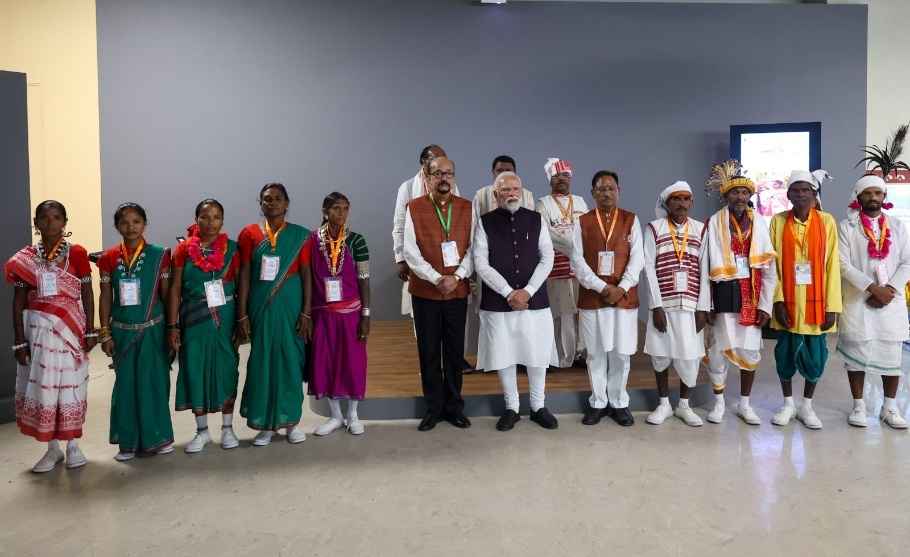 प्रधानमंत्री नरेंद्र मोदी ने जशपुर जिले की महिला स्व-सहायता समूहों द्वारा निर्मित ‘जशप्योर ब्रांड’ के अंतर्गत तैयार किए गए उत्पादों — महुआ लड्डू, महुआ कैंडी, महुआ टी, महुआ हेक्टर संग्रह आदि का अवलोकन किया और उनकी गुणवत्ता की सराहना की। उन्होंने जशपुर की पारंपरिक हस्तकला ‘छिंद कांसा टोकरी’ (हाथ से बनी बांस/छिंद की टोकरियाँ) के बारे में जानकारी ली और स्थानीय संसाधनों से बनी इस कलाकृति की प्रशंसा की। इस अवसर पर राज्यपाल रमेन डेका, मुख्यमंत्री विष्णुदेव साय, केंद्रीय जनजातीय कार्य मंत्री जुएल ओराम, राज्य के अनुसूचित जनजाति, अनुसूचित जाति, अन्य पिछड़ा वर्ग एवं अल्पसंख्यक विकास मंत्री रामविचार नेताम, केंद्रीय राज्य मंत्री (जनजातीय कार्य) दुर्गा दास उइके, केंद्रीय सचिव (जनजातीय कार्य मंत्रालय) रंजना चोपड़ा, प्रमुख सचिव (अनुसूचित जनजाति) श्री सोनमणि बोरा, निदेशक (केंद्रीय जनजातीय कार्य मंत्रालय) दीपाली मसीरकर, आयुक्त डॉ. सारांश मित्तर, टीआरटीआई संचालक श्रीमती हिना अनिमेष नेताम, शहीद वीर नारायण सिंह जी के वंशज तथा विभिन्न राज्यों के जनजातीय कार्य एवं अनुसंधान संस्थाओं के प्रतिनिधि उपस्थित थे।