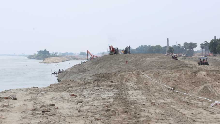इसके पश्चात सीढ़ी घाट के निकट गंगा चैनल के दायें तट पर पक्के सुरक्षात्मक एवं कटाव निरोधक कार्यों की प्रगति का स्थलीय निरीक्षण किया। सीढ़ी निर्माण, कटाव रोकने, पाथ-वे, शौचालय, चेंजिंग रूम, लाइटिंग और लैडस्केपिंग जैसे कार्यों के प्रगति का भी जायजा लिया।