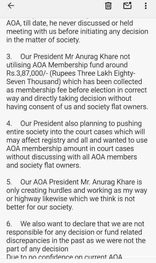 यह इस समय बिल्डर को समर्थन देने वाले कुछ लोगों के द्वारा भटकाए हुए हैं इन्होंने अभी तक जगह-जगह अपना रिजाइन भेजने का दावा किया है। परंतु अभी तक अपना इस्तीफा ना किसी AOA मेंबर को और ना ही AOA को email भेजी है। इससे साफ पता चलता है कि ये aoa टीम को बदनाम करके और निवासियों द्वारा चुनी गई कमेटी को भंग करने की साजिश है।