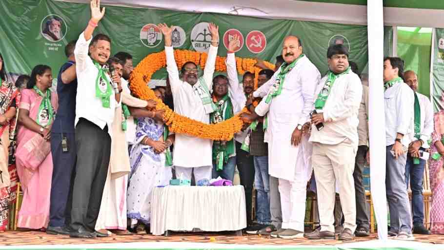 Jharkhand News: झारखंड के घाटशिला उपचुनाव को लेकर विभिन्न राजनीतिक दलों का प्रचार अभियान तेज हो गया है। इसी क्रम में सीएम हेमंत सोरेन (CM Hemant Soren) ने घाटशिला अनुमंडल के मुसाबनी प्रखंड के कुईलीसुता गांव स्थित मार्शल मैदान में झामुमो प्रत्याशी के समर्थन में एक जनसभा को संबोधित किया। इस मौके पर सिंहभूम सांसद जोबा मांझी, कई विधायक और बड़ी संख्या में कार्यकर्ता मौजूद रहे।