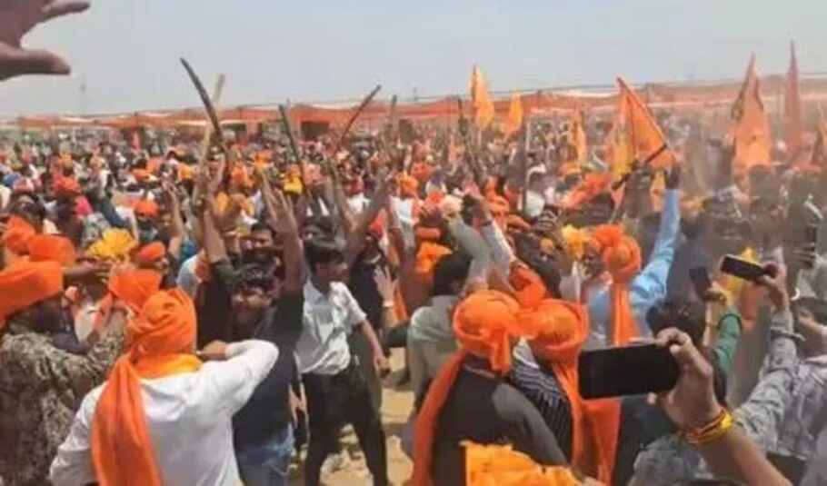 Karni Sena: उत्तर प्रदेश के आगरा जिले में क्षत्रिय करणी सेना (Kshatriya Karni Sena) द्वारा राणा सांगा की जयंती (Rana Sanga Birth Anniversary) के अवसर पर ‘रक्त स्वाभिमान सम्मेलन’ का आयोजन किया गया। इस कार्यक्रम में बड़ी संख्या में करणी सेना (Karni Sena) के कार्यकर्ता शामिल हुए। रैली के दौरान करणी सेना के कार्यकर्ता हाथों में तलवार लेकर सड़कों पर उतरे और समाजवादी पार्टी के सांसद रामजीलाल सुमन के खिलाफ जमकर नारेबाजी की। कार्यक्रम स्थल पर भारी भीड़ उमड़ने से स्थिति को नियंत्रित करने में पुलिस (Police) को काफी मशक्कत करनी पड़ी। देखिए पूरा वीडियो…