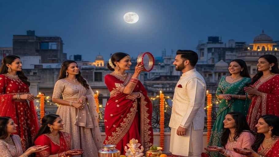 उत्तरी भारत के पहाड़ी शहरों जैसे चंडीगढ़, शिमला, देहरादून और हरिद्वार में चांद 8:05 से 8:09 बजे के बीच दिख सकता है। ठंडी हवाओं के बीच वेलवेट या सिल्क के कपड़े पहनना सही रहेगा, जो गर्म भी रखें और ग्लैमरस भी लगें। 5 बजे स्नान कर लें, 6 बजे तक पूजा की थाली सजा लें और 7:45 बजे तक छत पर बैठकर चांद के दीदार का इंतजार करें।