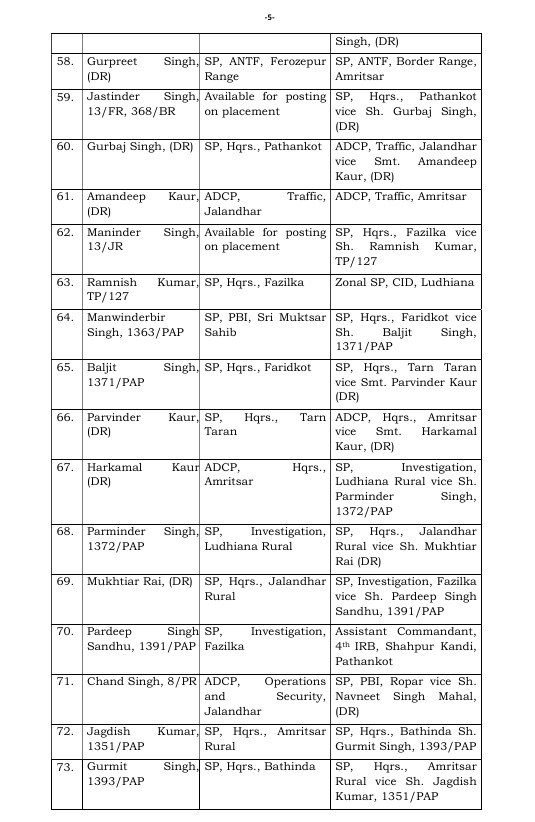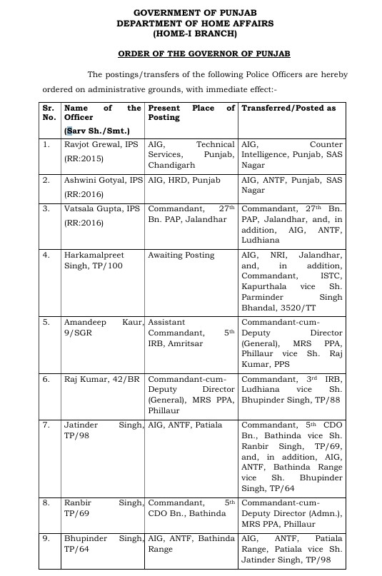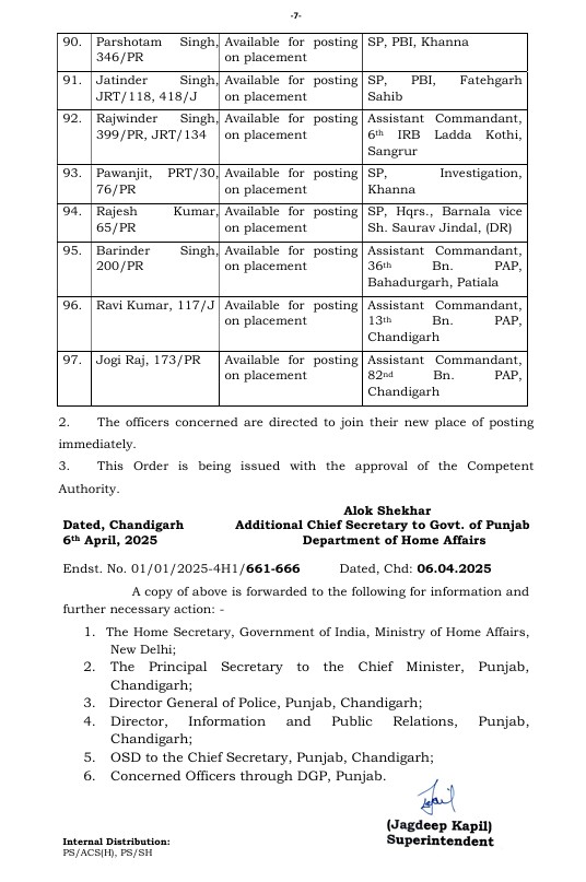 Punjab News: पंजाब सरकार ने राज्य में एक बड़े प्रशासनिक फेरबदल (Administrative Reshuffle) की घोषणा करते हुए भारतीय पुलिस सेवा (IPS) के कई वरिष्ठ अधिकारियों समेत कुल 97 पुलिस अधिकारियों (Police Officers) के तबादले किए हैं। यह फैसला राज्य में पुलिस प्रशासन (Police Administration) की कार्यप्रणाली को और अधिक प्रभावी एवं सुचारु बनाने के उद्देश्य से लिया गया है।