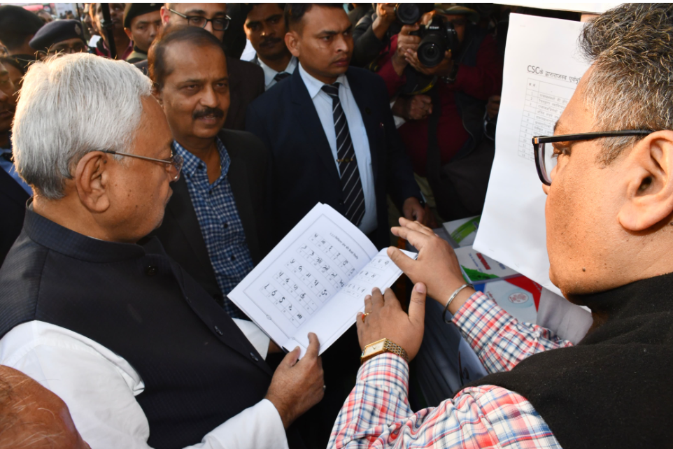 Patna Book Fair: पटना गाँधी मैदान में लगे राजस्व एवं भूमि सुधार विभाग के स्टॉल पर मुख्यमंत्री श्री नीतीश कुमार ने आकर विभाग द्वारा रिलीज की गई कैथी लिपि की पुस्तिका का अवलोकन किया। विभाग के अपर मुख्य सचिव दीपक कुमार सिंह ने मुख्यमंत्री को इस पुस्तिका की विशेषता के बारे में जानकारी देते हुये बताया की बिहार में जितनी तरह की कैथी लिपि प्रचलित हैं, उनसभी का समावेश इसमें किया गया है। इसके अलावा एसीएस ने मुख्यमंत्री को बताया कि भूमि सर्वेक्षण से संबंधित सर्वे प्रश्नोत्तरी (FAQ) भी यहाँ उपलब्ध है।
