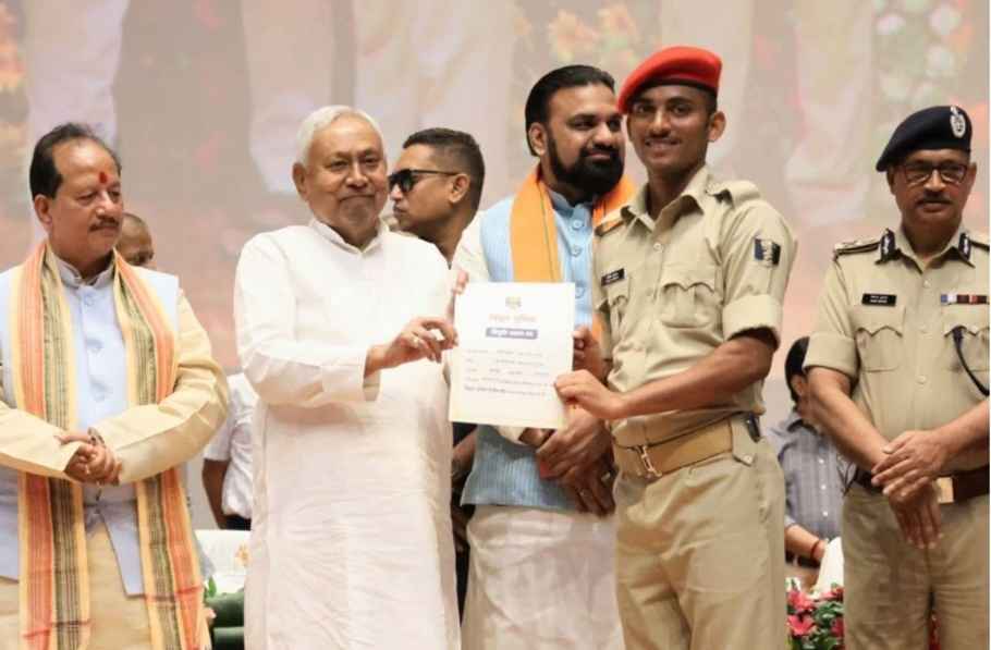 Patna News: मुख्यमंत्री नीतीश कुमार ने आज सम्राट अशोक कन्वेंशन केंद्र स्थित बापू सभागार में नवनियुक्त 21 हजार 391 पुलिसकर्मियों को नियुक्ति-पत्र प्रदान किया। इस दौरान मुख्यमंत्री ने सौरभ कुमार, राज आनंद, हीरा लाल यादव, आकाश पाण्डेय, अंकित कुमार, सोनू कुमार, प्रभाकर कुमार, चंचल कुमारी, रितु कुमारी, मो० सलीम अंसारी, बांके बिहारी एवं सीता कुमारी को सांकेतिक रूप से नियुक्ति पत्र प्रदान किया। कार्यक्रम में उपस्थित नियुक्ति पत्र पानेवाले पुलिसकर्मियों ने मुख्यमंत्री का ताली बजाकर आभार प्रकट किया और खुशी जताई।