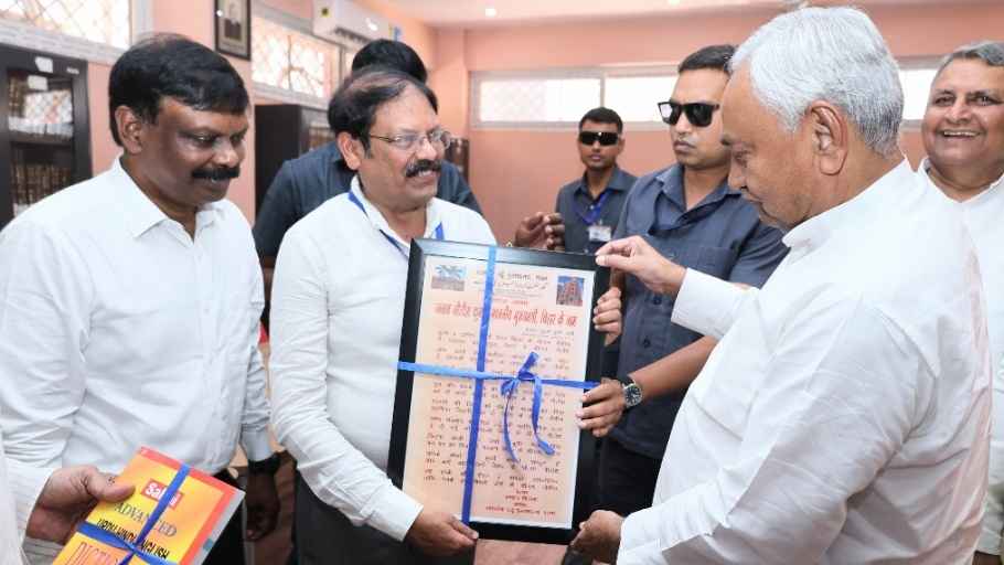 शिक्षा मंत्री सुनील कुमार ने मुख्यमंत्री को पुस्तक भेंटकर उनका स्वागत किया। ज्ञातव्य है कि राजकीय उर्दू पुस्तकालय, पटना की स्थापना वर्ष 1938 ई० में दो मंजिला भवन में हुई थी, जो अशोक राजपथ के खजांची रोड मोड़ के सामने अवस्थित है।
