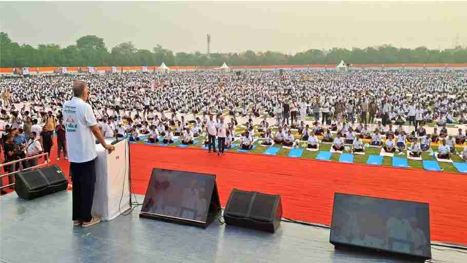 स्वास्थ्य मंत्री डॉ. बलबीर सिंह ने जनसमूह को संबोधित करते हुए योग को जीवन का अभिन्न अंग बनाने का संदेश दिया।
