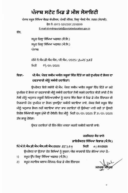 Punjab के स्कूलों में पंजाब सरकार ने मिड-डे मील को लेकर नए आदेश जारी किए हैं।