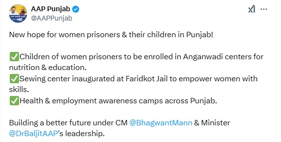 मंत्री डॉ. कौर ने बताया कि महिला कैदियों को सशक्त बनाने के लिए जेल में सिलाई केंद्र शुरू किया गया है, जिससे उन्हें कौशल विकास के अवसर मिल सकें और वे आत्मनिर्भर बन सकें। इसके अलावा, उन्होंने कहा कि जेल में एक सांस्कृतिक कार्यक्रम भी आयोजित किया गया।