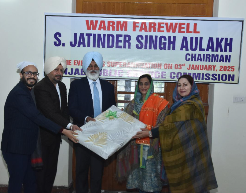 Punjab: पटियाला, 3 जनवरी: पंजाब पब्लिक सर्विस कमीशन (पी.पी.एस.सी.) के चेयरमैन के रूप में सेवा निभा रहे श्री जतिंदर सिंह औलख 29 जनवरी, 2024 से 3 जनवरी, 2025 तक का अपना कार्यकाल पूरा करके आज सेवानिवृत्त हो गए हैं। अपनी दृढ़ नेतृत्व क्षमता और व्यवहारिक दृष्टिकोण के लिए जाने जाने वाले श्री जतिंदर सिंह औलख ने अपने छोटे लेकिन प्रभावशाली कार्यकाल दौरान पंजाब लोक सेवा कमीशन में बड़े सुधार किए हैं।
