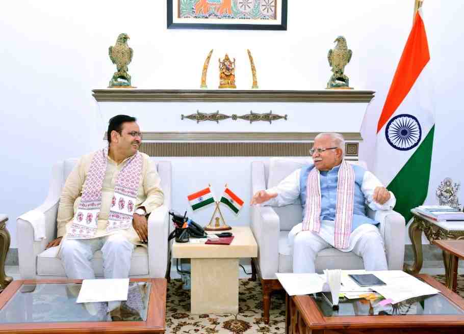 Rajasthan News: राजस्थान के मुख्यमंत्री भजनलाल शर्मा ने बुधवार को नई दिल्ली में केंद्रीय ऊर्जा, आवासन एवं शहरी कार्य मंत्री श्री मनोहर लाल खट्टर से उनके आवास पर भेंट कर राजस्थान में ऊर्जा और आवासन से जुड़े महत्वपूर्ण मुद्दों पर विस्तार से चर्चा की।