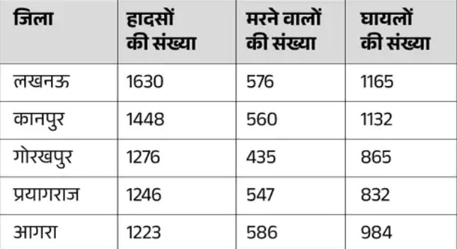 यातायात निदेशालय ने 20 जिलों की पहचान की है, जहां ट्रैफिक नियमों का सबसे ज्यादा उल्लंघन और सड़क हादसे हो रहे हैं। लखनऊ इस सूची में शीर्ष पर है, जहां 2024 में 1,630 सड़क हादसों में 576 लोगों की मौत हुई और 1,165 लोग घायल हुए। इसके बाद कानपुर, गोरखपुर, प्रयागराज, आगरा, बरेली, नोएडा, हरदोई, बुलंदशहर, मथुरा, गाजियाबाद, अलीगढ़, बाराबंकी, सीतापुर, उन्नाव, मेरठ, शाहजहांपुर, आजमगढ़, लखीमपुर खीरी और कुशीनगर शामिल हैं। इन क्षेत्रों में विशेष अभियान चलाया जा रहा है।