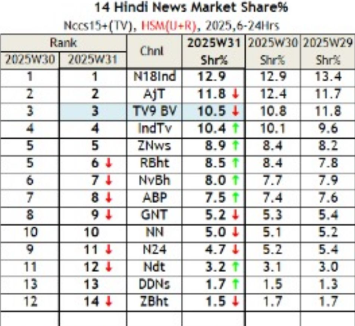 TRP News: TRP का इंतजार खत्म हुआ। आइए आपको जल्दी से टॉप-10 हिंदी न्यूज़ चैनलों की रैंकिंग बता देते हैं। न्यूज़18 इंडिया (News18 India) फिलहाल नंबर-1 पर बरकरार है।