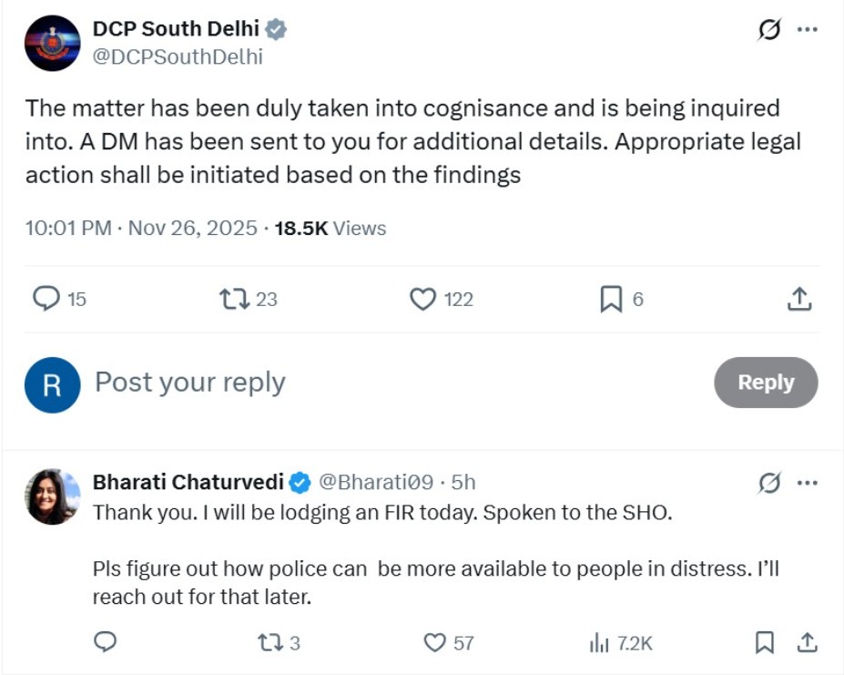 दिल्ली पुलिस ने भी मामले में प्रतिक्रिया दी और कहा, ‘मामले को संज्ञान में लिया गया है और जांच की जा रही है। नतीजों के आधार पर कानूनी कार्रवाई की जाएगी।’