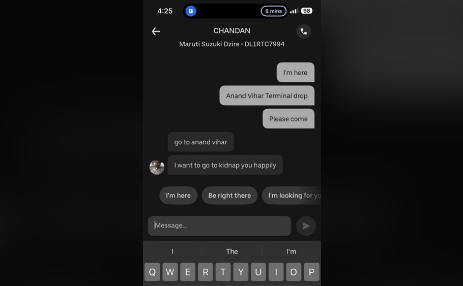 यूजर ने आगे बताया कि जैसे ही कैब ड्राइवर आने वाला था, उन्होंने ओटीपी चेक (OTP Check) करने के बारे में सोचा। लेकिन, जब उन्होंने उबर ऐप चेक किया, तो उसे एक अजीबोगरीब मैसेज दिखाई दिया। पोस्ट के साथ शेयर किए गए स्क्रीनशॉट में राइडर और कैब ड्राइवर के बीच संक्षिप्त बातचीत दिखाई गई। राइडर ने लिखा, ‘मैं यहां हूं। आनंद विहार टर्मिनल ड्रॉप। कृपया आइए।’ जवाब में ड्राइवर ने लिखा, ‘आनंद विहार जाओ। मैं तुम्हें खुशी-खुशी किडनैप करने जाना चाहता हूं।’