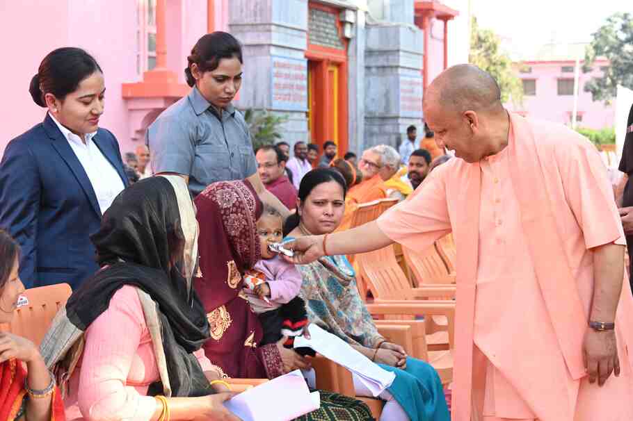 गोरखपुर में होलिकोत्सव (Holikotsav) मनाने के बाद सीएम योगी (CM Yogi) शनिवार सुबह गोरखनाथ मंदिर (Gorakhnath Temple) में आयोजित जनता दर्शन में लोगों की समस्याएं सुन रहे थे। मंदिर परिसर के महंत दिग्विजयनाथ स्मृति सभागार के बाहर कुर्सियों पर बैठाए गए लोगों तक वह खुद पहुंचे और एक-एक करके सबकी समस्याएं सुनीं। इस दौरान करीब 200 लोगों से मुलाकात कर उन्होंने सबको आश्वस्त किया कि उनके रहते किसी के साथ अन्याय नहीं होने दिया जाएगा। सबके प्रार्थना पत्रों को संबंधित अधिकारियों को संदर्भित करते हुए त्वरित और संतुष्टिपरक निस्तारण का निर्देश देने के साथ सीएम ने लोगों को भरोसा दिलाया कि सरकार हर पीड़ित की समस्या का समाधान कराने के लिए दृढ़ संकल्पित है।