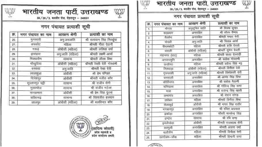 Uttarakhand Nikay Chunav: बीजेपी ने जारी की अपने प्रत्याशियों की पहली सूची, जानिए किसको कहा से मिला टिकट