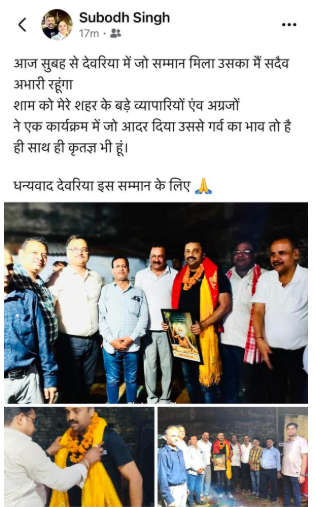 Zee Media: ज़ी मीडिया के आउटपुट हेड सुबोध सिंह (Subodh Singh) के लिए यूपी के देवरिया में सम्मान समारोह का आयोजन किया गया। जिसमें बौद्धिक वर्ग के साथ व्यापारी वर्ग का बड़ा तबका शामिल हुआ। सुबोध सिंह ने सम्मान के लिए सभी का आभार जताया।